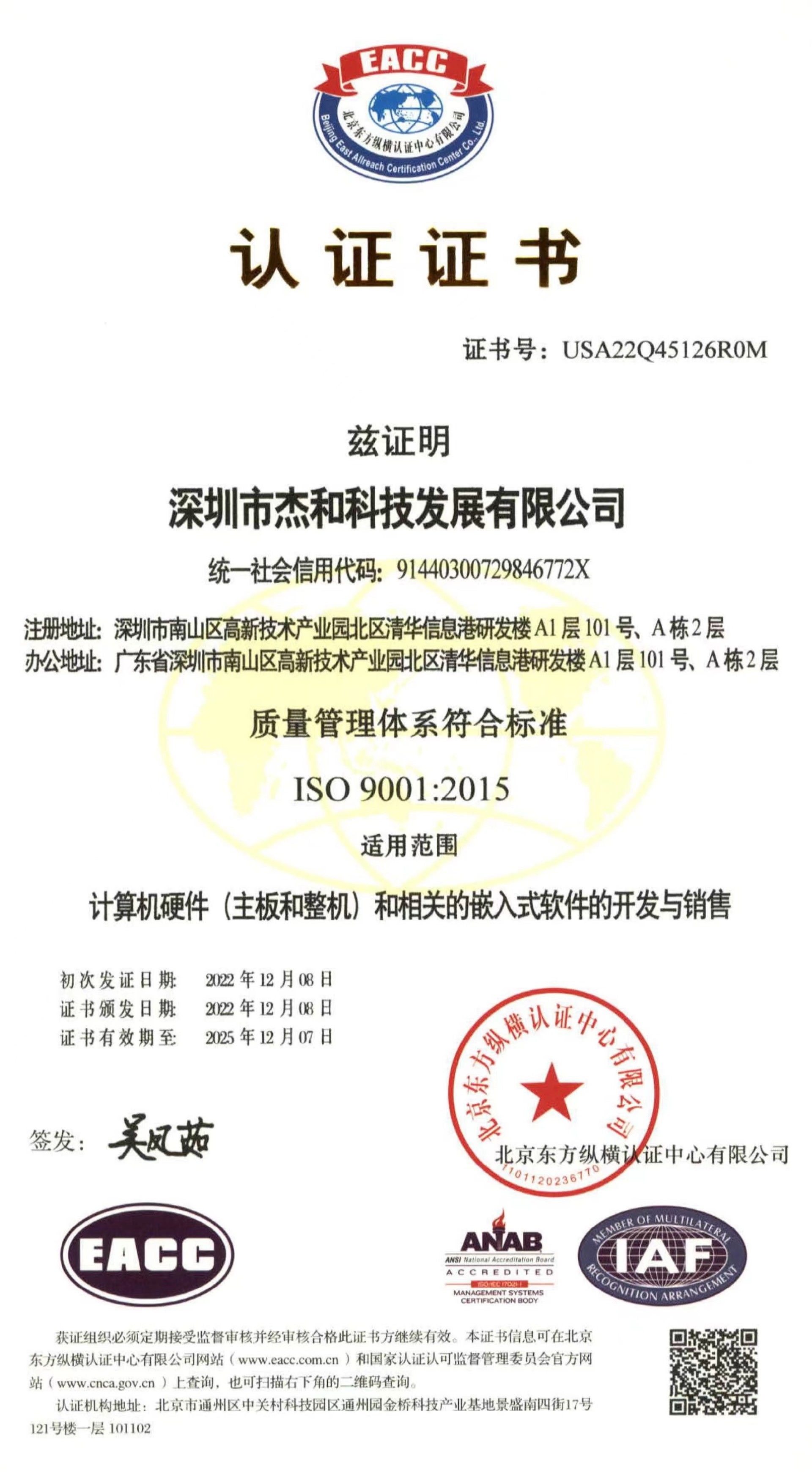 ISO9001质量管理体系认证作为国际标准化组织的管理性质标杆,它的地位可见一斑,其认可彰显了摩根娱乐|数字科技的体系管理以及产品的质量。摩根娱乐|数字科技在过去几年不断提升设备标准化生产的能力,减少人为质量问题,把ISO9001质量管理体系理念贯穿于产品研发—生产全流程。