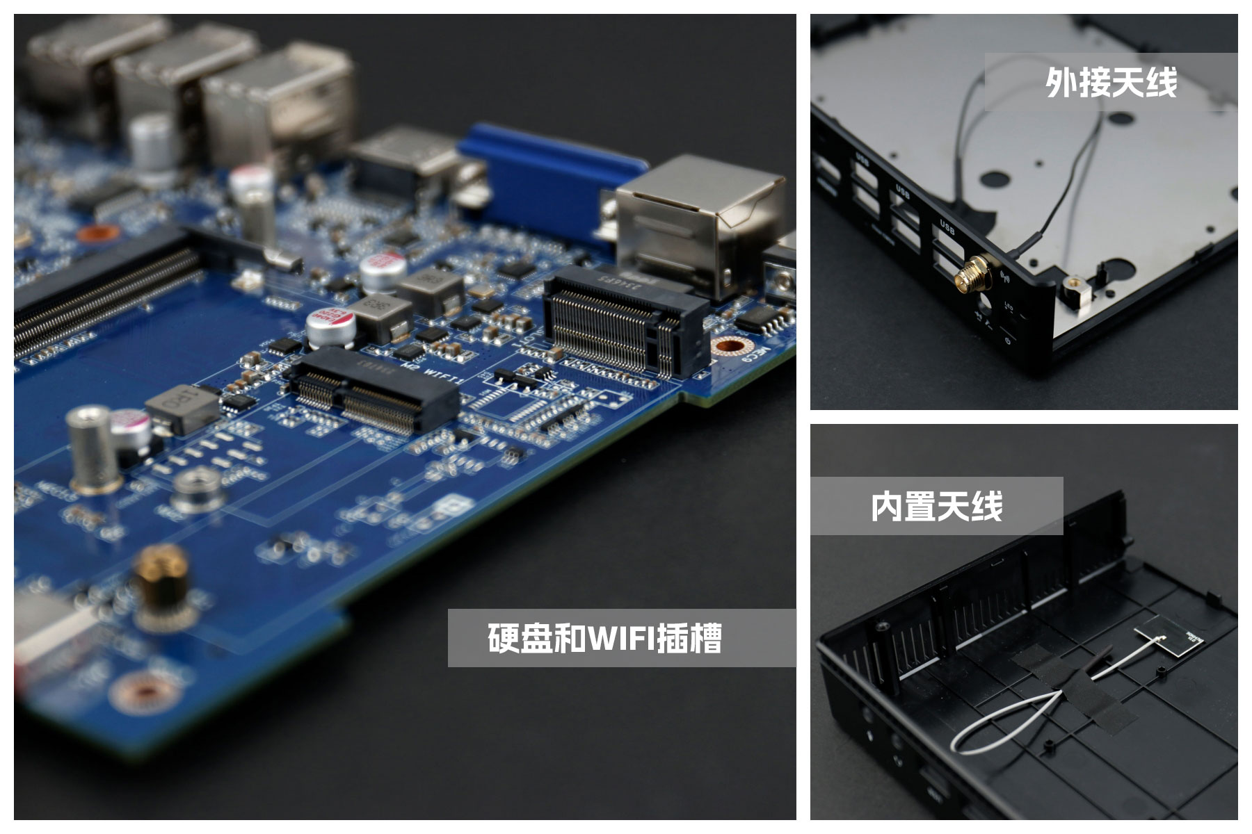 摩根娱乐|数字桌面云终端Y-BOX S2主板上配备了 1个 M.2 固态硬盘位,接口规格为 PCIe3.0 标准,匹配标准的 2280 规格硬盘。一侧还有一个M.2接口,匹配2230长度的WIFI/BT模块插槽,WiFi模块可以连接的是外接天线,增强信号,同时也可以内接天线,灵活应用,支持Wi-Fi 5/6/6E网络。