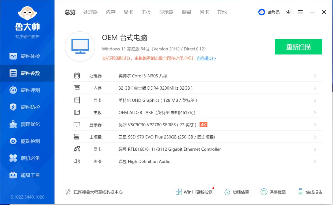 在本次测试中,CPU Mark得分10394.2,数据表明,这套配置确实可以很好地胜任对于日常高效运行的性能要求。
