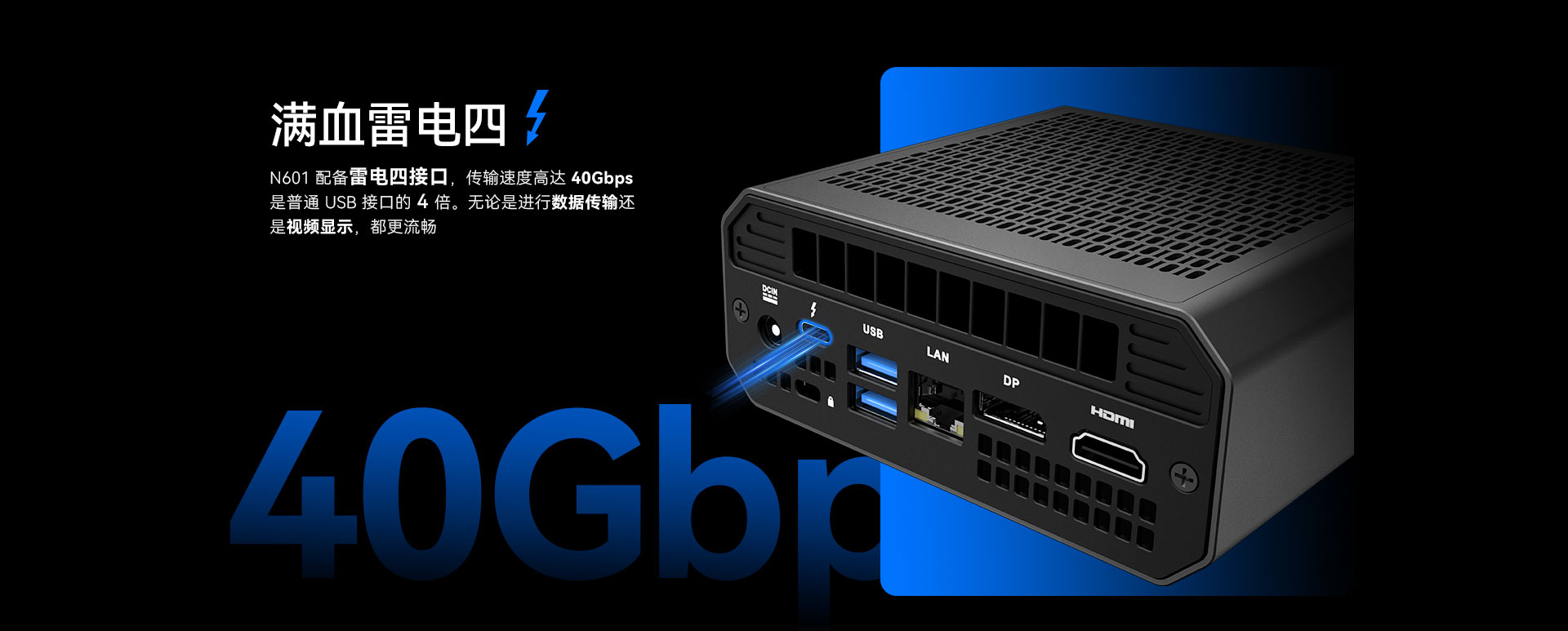 摩根娱乐|数字科技N601配备雷电四接口,传输速度高达40Gbps,用户可通过该接口连接2块屏幕。还可通过HDMI2.1接口,DP1.4接口再连接两块屏幕,实现四屏异显。雷电四还可以连接外设,如鼠标、键盘、控制器和耳机等。