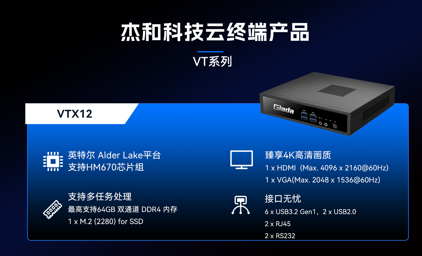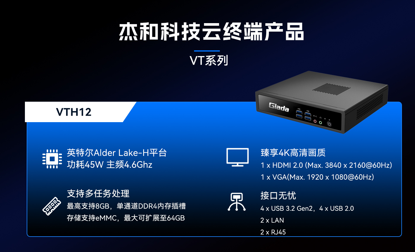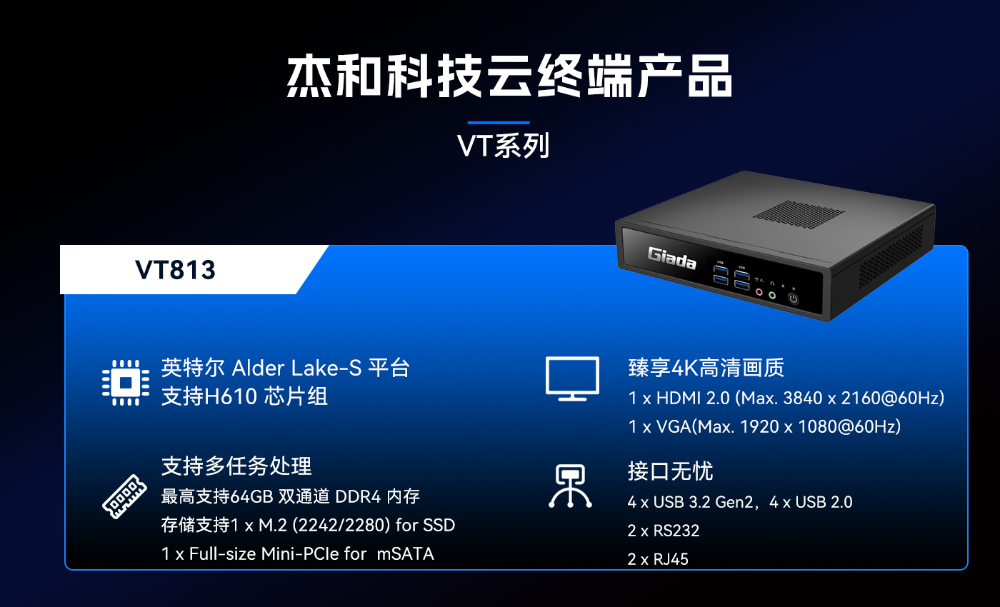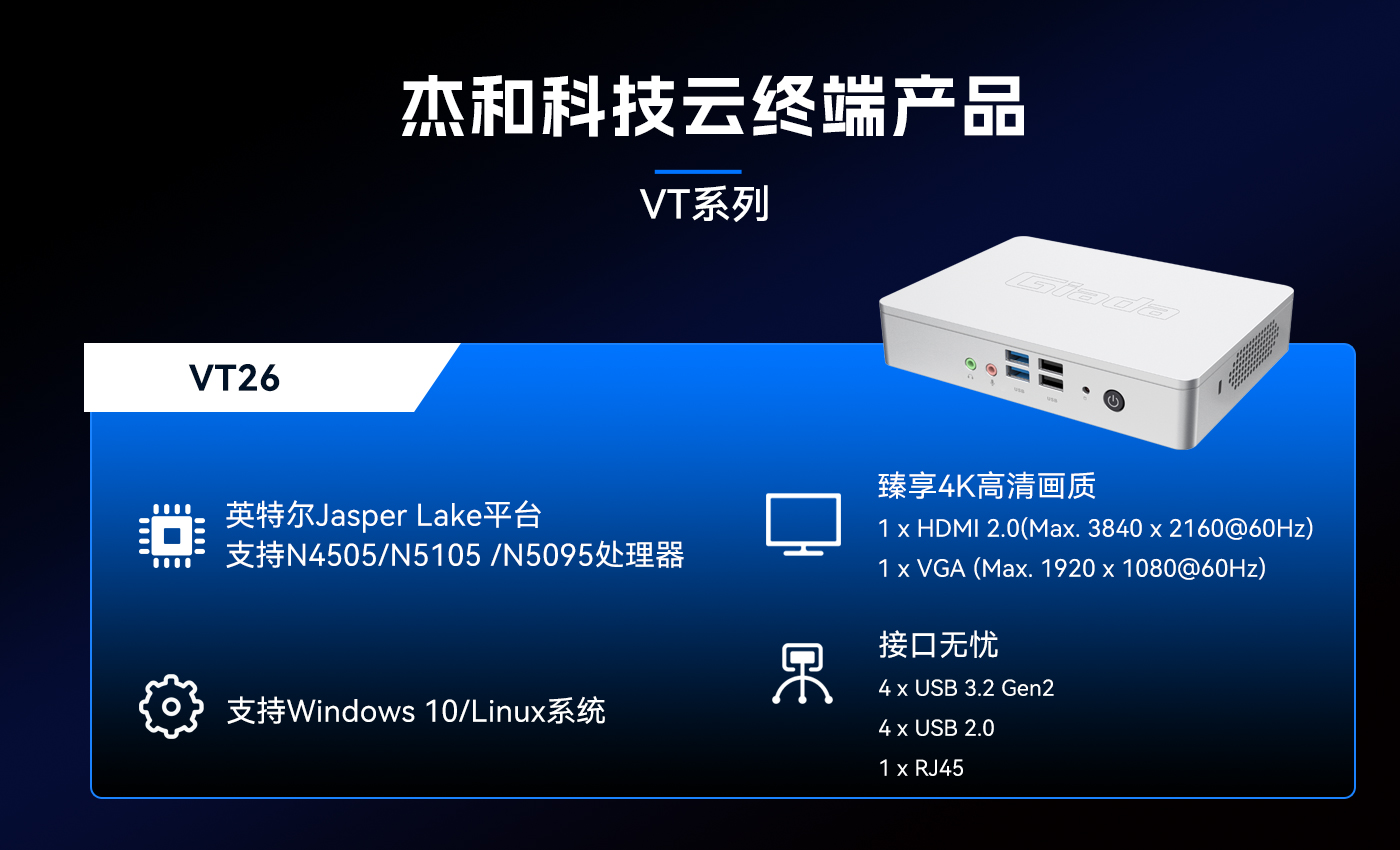 除此之外摩根娱乐|数字科技云终端VT系列产品线还提供多样化的硬件配置选择,涵盖多种处理器架构、内存容量、存储设备和接口类型,满足不同应用场景的个性化需求。