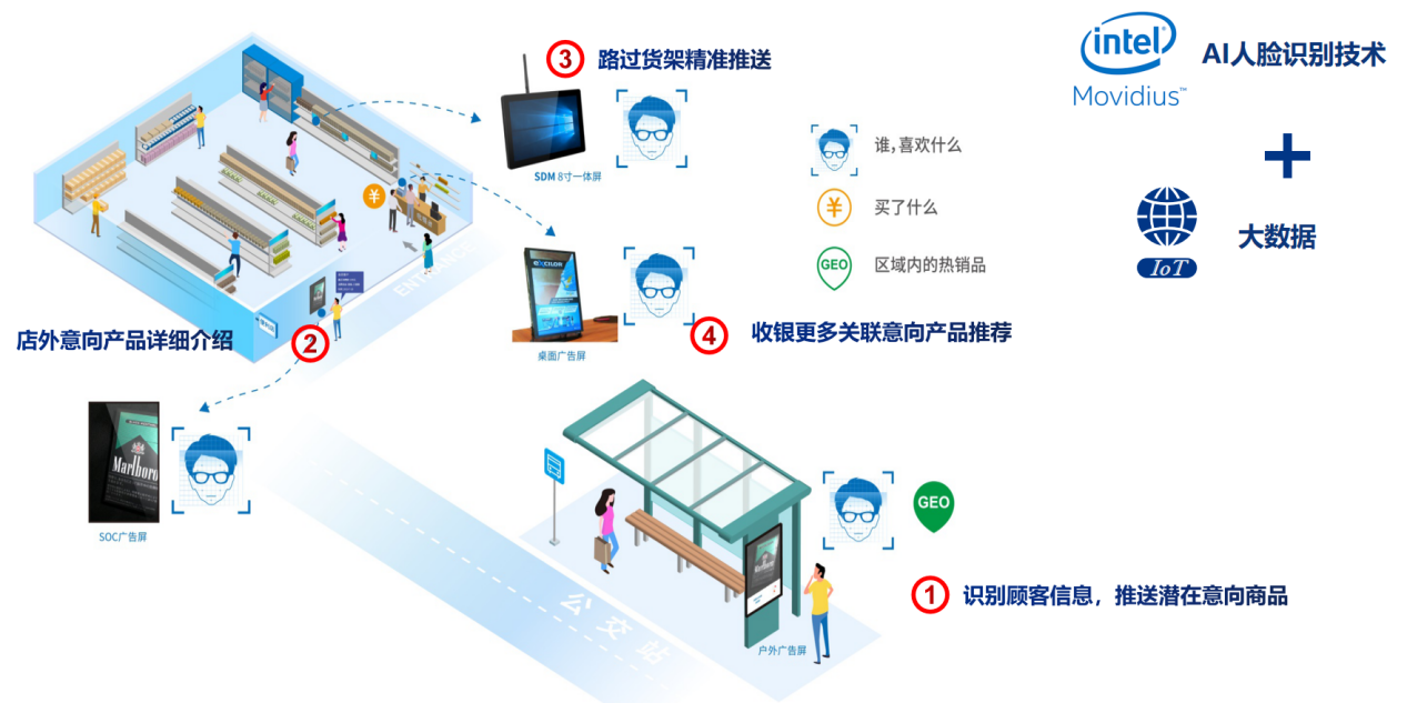 为了更好的迎合产业发展的趋势,对产业输出新鲜的营销理念和模式,驱动零售业数字化、智慧化管理模式的进一步升级,摩根娱乐|数字科技集成了Intel®Movidius视觉识别技术和OpenVINOTM人工智能视觉学习技术,自主研发了摩根娱乐|数字GDSM智慧商显平台。更凭借多年硬件开发经验,形成一套完整、切实的精准营销方案,获得了Intel®MRS市场方案认证。