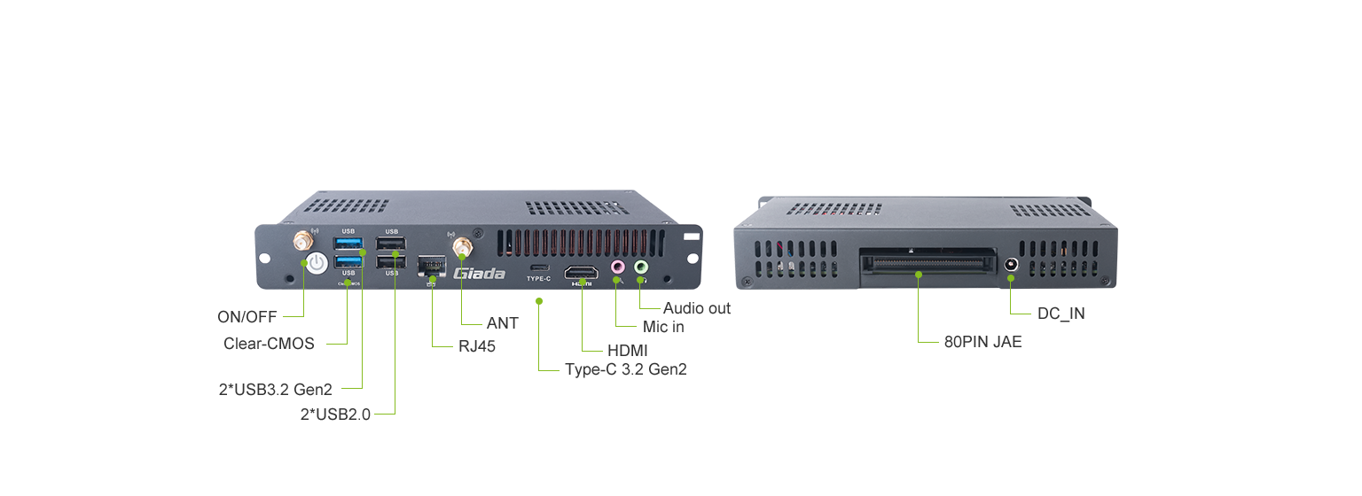 PC612拥有4个USB接口及1个Type-C3.2 Gen2接口,1 x M.2(2242/2280)支持速度高达PCIe4.0 x4的SSD,1 x M.2 (2230) 扩展 Wi-Fi/BT模块,支持WiFi6E,1 x RJ45等。作为标准的OPS产品PC612,凭借其强大的性能处理能力与丰富的扩展接口,在商业领域与教育行业中都能大展身手。