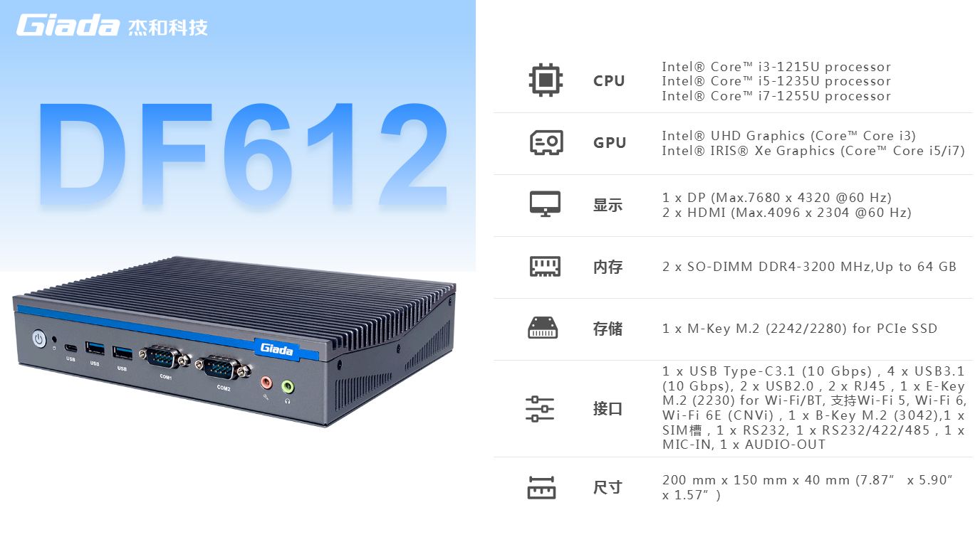 摩根娱乐|数字科技,商用显示硬件解决方案领导者,深耕商业显示领域24年,业务遍布欧洲,美洲,东南亚和南非等60多个国家,服务超过3000名客户,自有品牌 Giada 已成为欧洲数字标牌媒体播控器的领导品牌。在DF系列产品中,DF612作为一款全新的嵌入式计算机,搭载英特尔第12代Alder Lake处理器,具有突破性的技术、增强的图形处理能力和丰富的I/O接口,广泛应用于商业显示、智能车载、安防领域和边缘人工智能等场景。