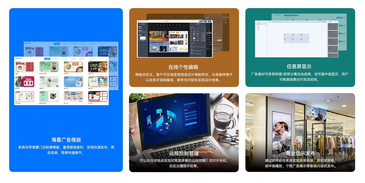 摩根娱乐|数字科技为客户提供可靠的硬软云一体化服务,针对商显领域,除了为客户提供数字标牌等硬件产品,同时也自主研发了摩根娱乐|数字GDSM-C数字化信息发布管理系统软件,作为全方位的远程信息编辑发布及设备管理系统,提供丰富广告素材与人性化编辑工具,用户可发挥自我创造能力,新手也可轻松实现大师设计效果,同时可实现多屏拼接/分离、画中画等自由选择,可根据应用场景灵活安排,满足大型会议、百货商场、体育赛事、金融证券的等多种智能显示需求。