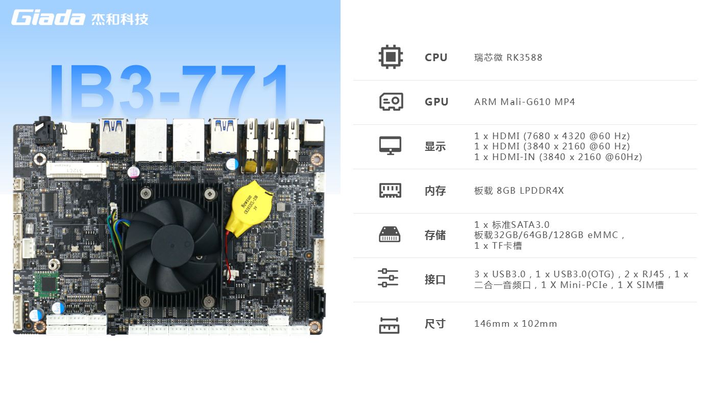 作为瑞芯微新一代旗舰级高端芯片,RK3588处理器具备出色的性能,能够满足各种高端应用场景的需求。借助其卓越的性能特点,摩根娱乐|数字科技骄傲地推出了最新的8K人工智能主板IB3-771。