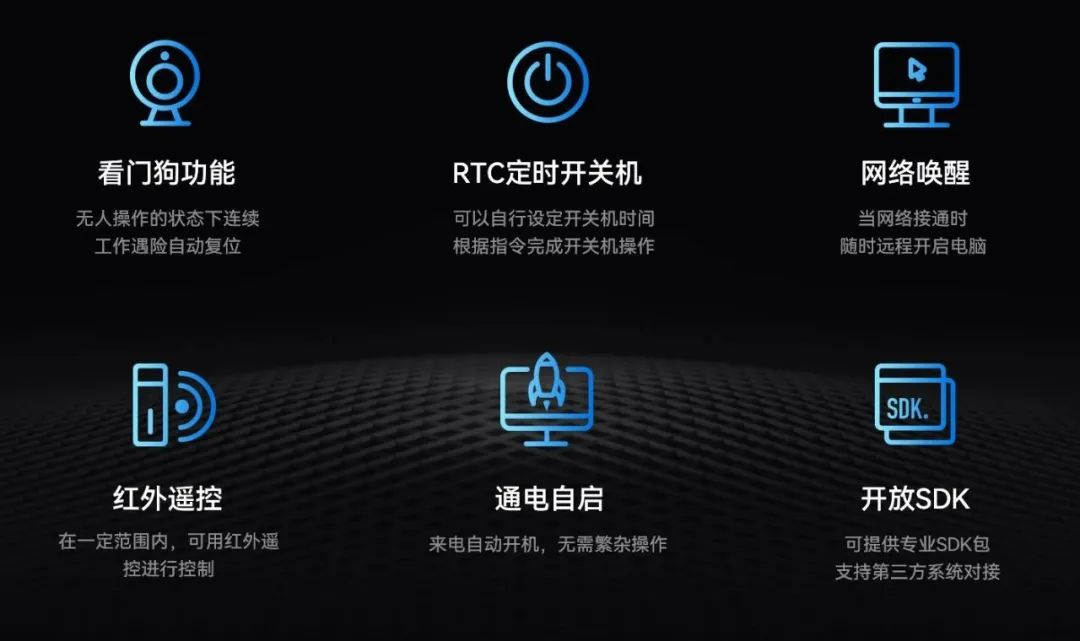 摩根娱乐|数字主板IB3-771配置了无人值守专利技术,大力降低因高算力带来的能源消耗,该技术通过定时开关机、看门狗计时器、RTC宕机自检、红外遥控和局域网唤醒等功能实现主板绿色运行。