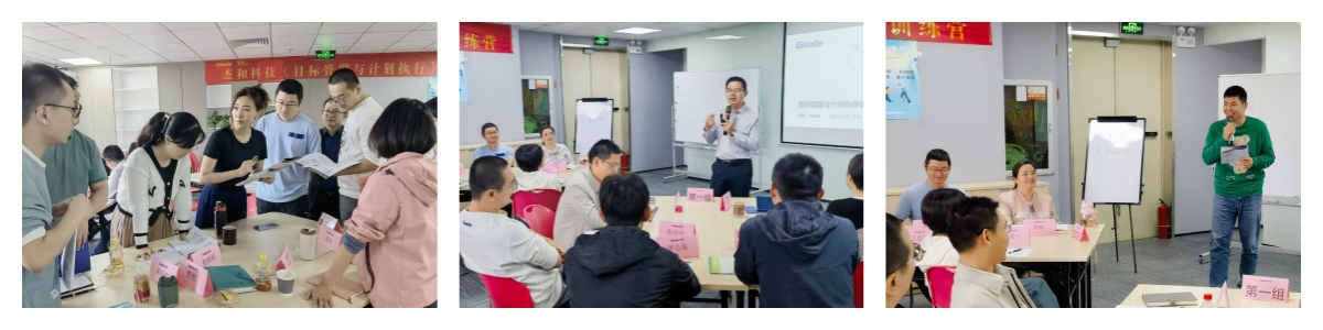 本次培训外聘了专业的组织与人才培养专家进行授课,在培训课程中,摩根娱乐|数字的国内与国际营销中心、产品部等,以及杰拓管理层的各个小伙伴分为五个小组,通过小组讨论、上台发言、随堂测验等互动形式,学习并了解到基于战略目标的组织执行力的重要性,目标设定的SMART原则与时间管理的方法,以及执行力提升的四大动力系统,现场学习氛围活跃,求知欲望强烈。