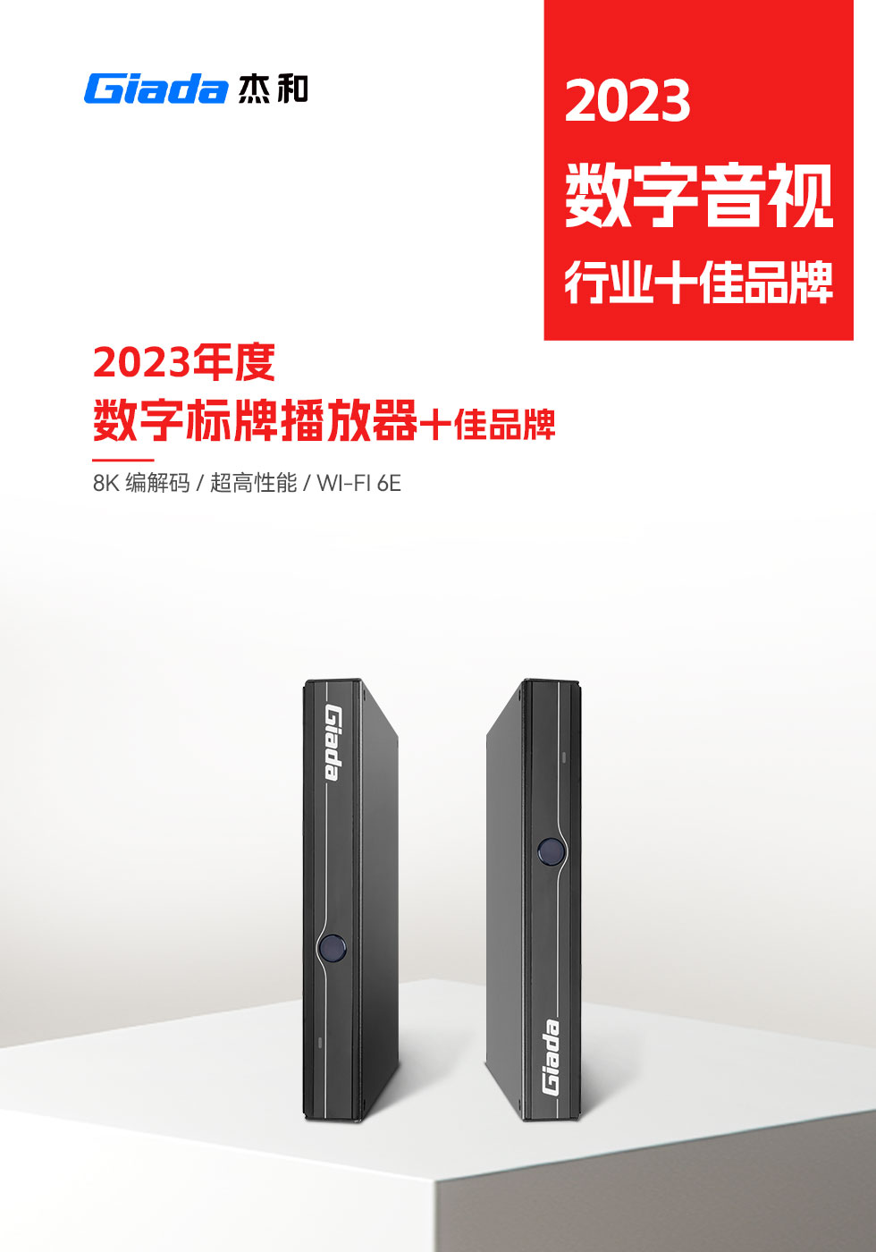 2023年接近尾声,新旧更替之际,第15届DAV数字音视工程网“数字音视行业十佳品牌评选活动”获奖名单新鲜出炉。摩根娱乐|数字科技在此次评选活动中,荣获“2023年度商显主板十佳品牌”、“2023年度数字标牌播放器十佳品牌”两项大奖,Giada摩根娱乐|数字科技已连续四年登上同一榜单。