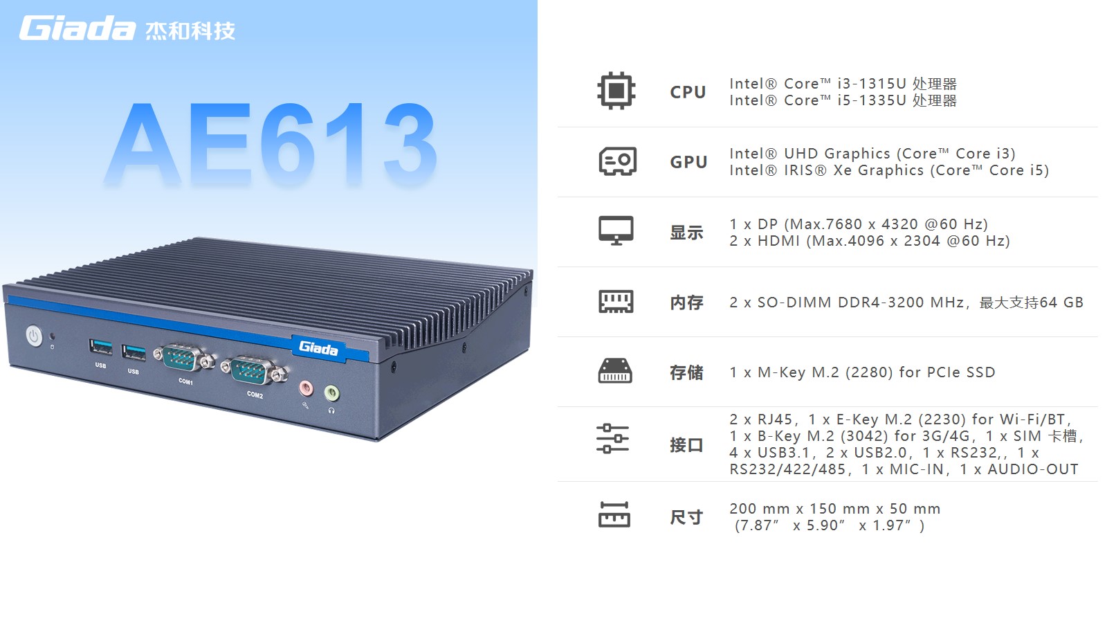 摩根娱乐|数字AE613拥有2 x SO-DIMM DDR4-3200 MHz内存、1 x M-Key M.2 (2280) for PCIe SSD存储,最大支持64GB,无论是处理复杂的多任务环境、还是运行高负载的软件都游刃有余。